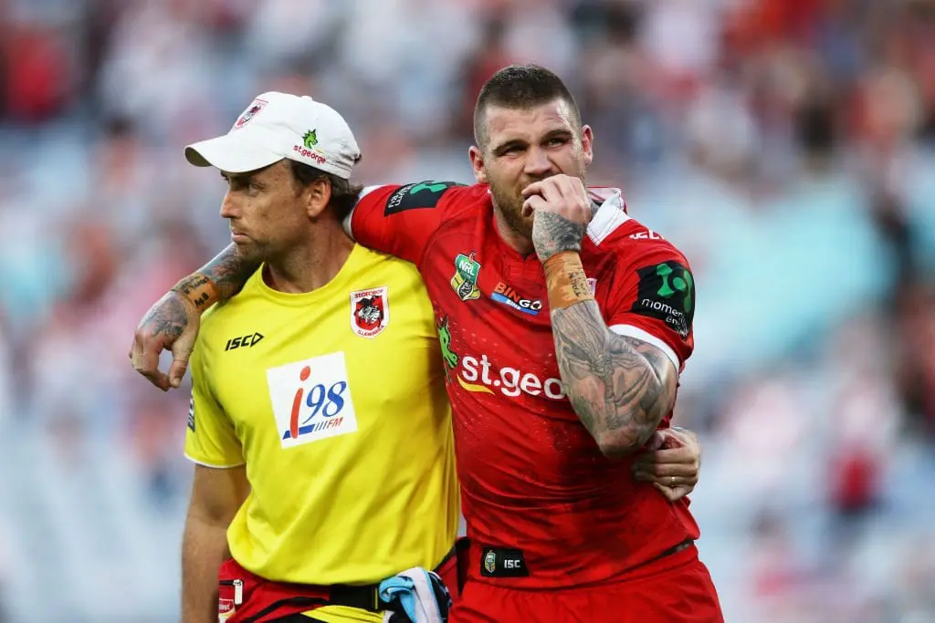 Dugan suffered the injury midway through the second half of the Dragons' 28-6 win over the Wests Tigers at ANZ Stadium, Olympic Park on Sunday afternoon.