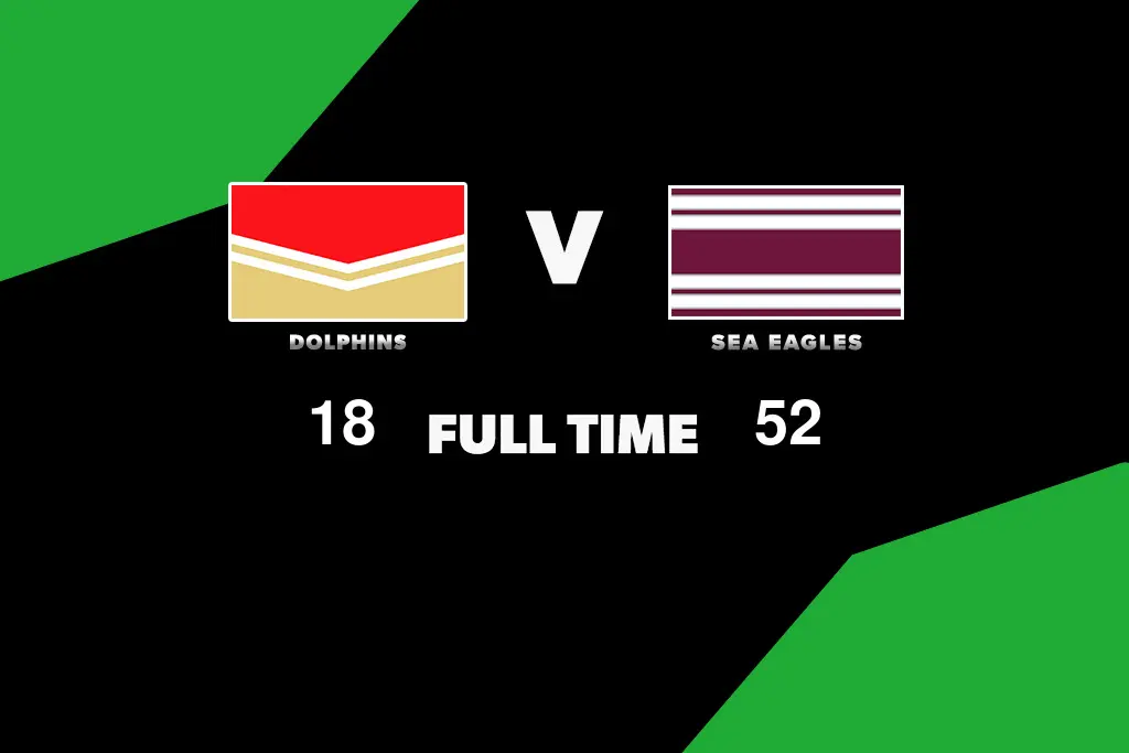 The Dolphins face the Manly Sea Eagles in Round 5 of the 2026 NRL season. Follow the live scores, team lists, match statistics and key moments from the game at Kayo Stadium.