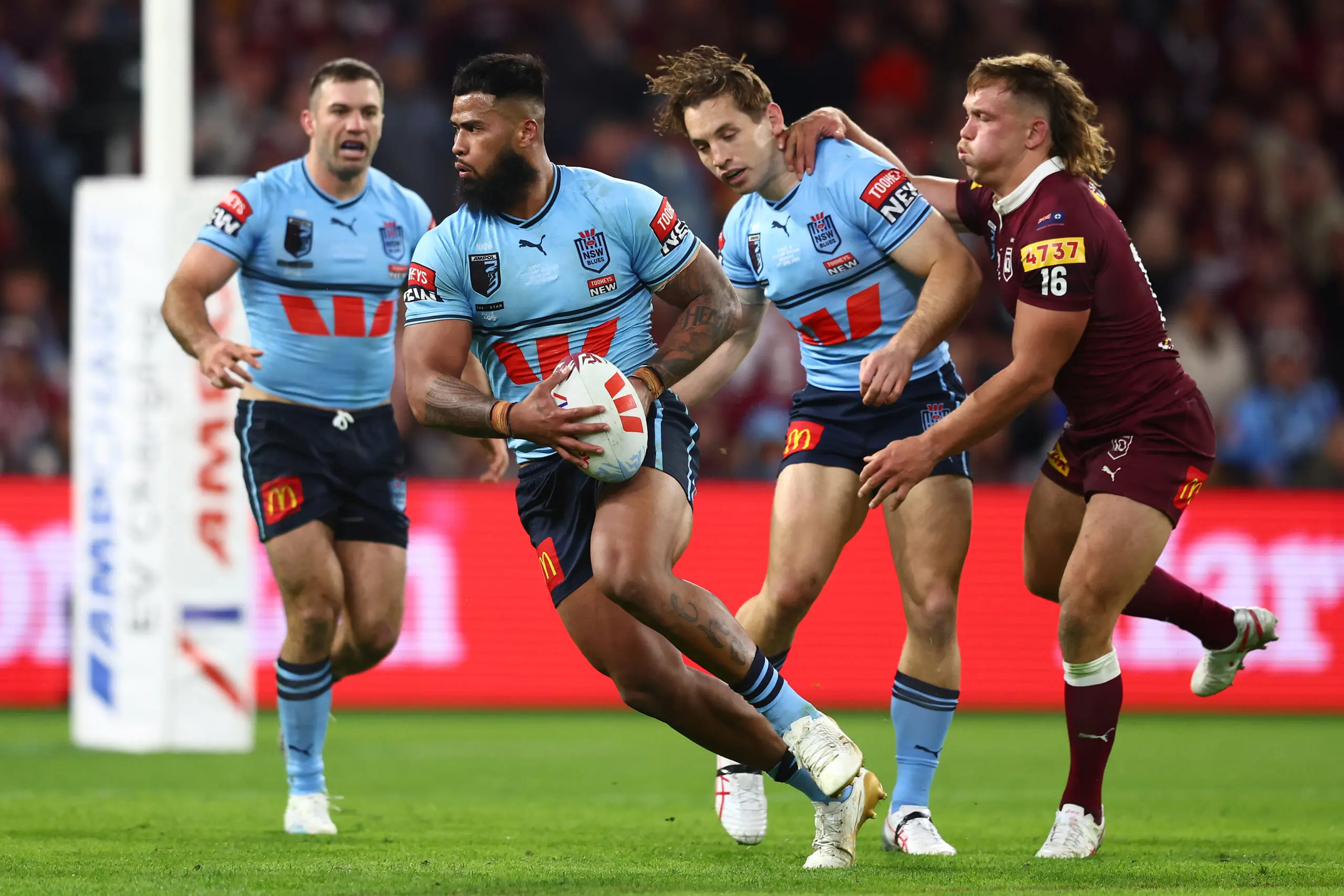 The Maroons ultimately were bullied by the Blues, and the game was over before halftime as the Blues set a new record for the biggest lead at halftime in an Origin game before holding off the Maroons in the second stanza.