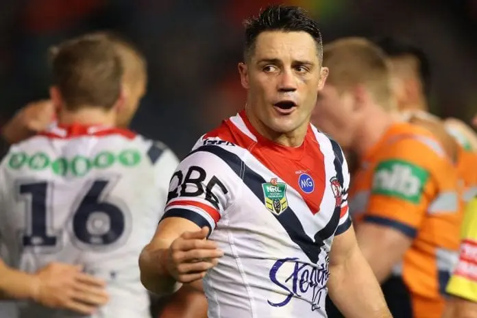 NEWCASTLE, AUSTRALIA - JUNE 09: Cooper Cronk of the Roosters during the round 14 NRL match between the Newcastle Knights and the Sydney Roosters at McDonald Jones Stadium on June 9, 2018 in Newcastle, Australia. (Photo by Tony Feder/Getty Images)
